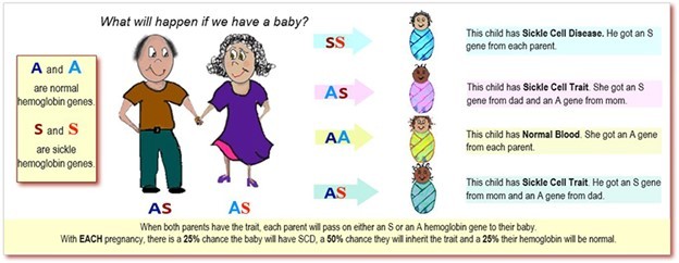 There are some rare conditions associated with SCT (e.g. blood in the urine) so knowing if you have sickle cell trait may be helpful. If you and your partner both carry an abnormal copy of the gene, there is a 25% (1 in 4) chance that with each pregnancy, your baby will have SCD, a 25% chance they will have no abnormality, and a 50% chance they will inherit the condition as trait as well.