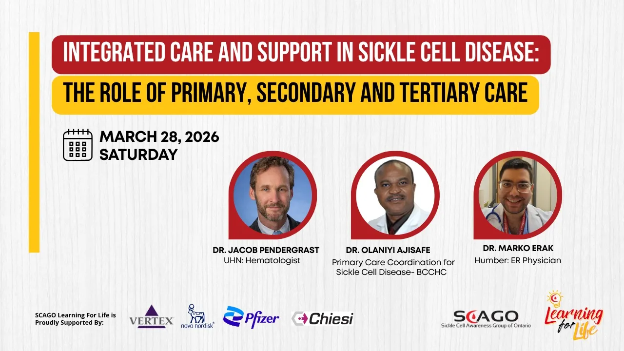 Série de webinaires informatifs visant à améliorer votre compréhension de la maladie des cellules falciformes, y compris ses symptômes, traitements, gestion et les diverses façons dont elle impacte les patients, leurs familles et les aidants.