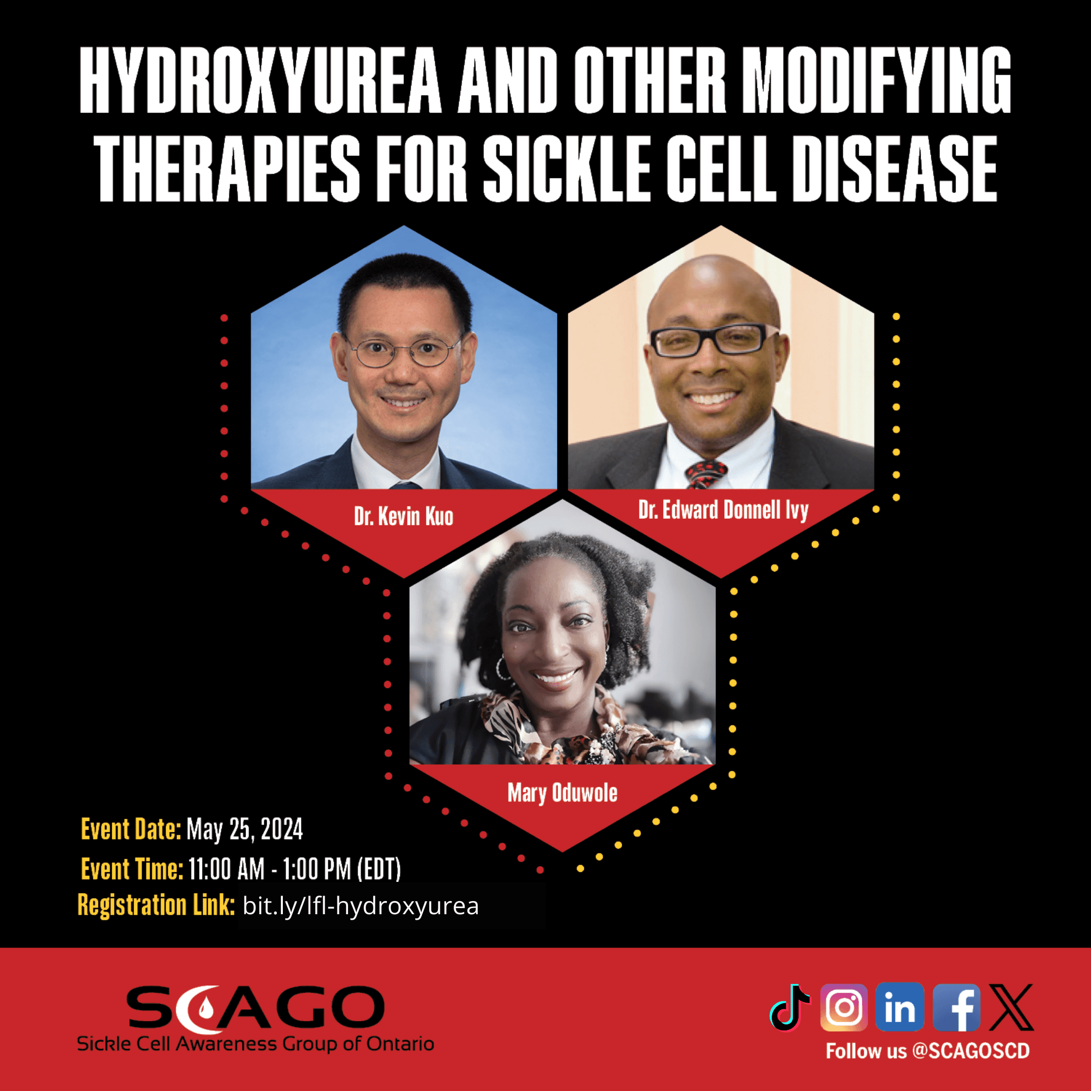 A learning for life session on “Hydroxyurea and Other Modifying Therapies for Sickle Cell Disease” is happening on Sat. May 25th! Register now to learn more about these modifying therapies used in treating Sickle Cell Disease- and gain insights on what they are, their benefits and side-effects.